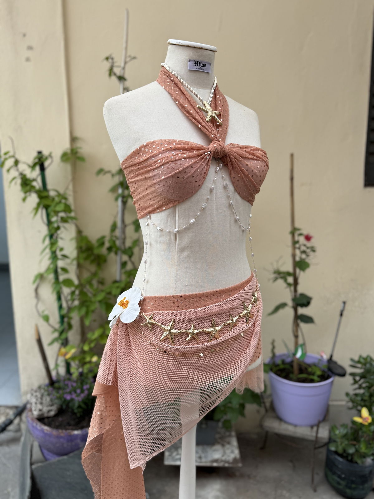 Este set incluye: un top, un collar estrella, una flor hebilla y una falda confeccionada lista para usar (no tenes que acomodar las telas, ya viene costurada), un caderin estrellas para la cadera, mas dos cadenas finitas colgantes para colocar donde quieras